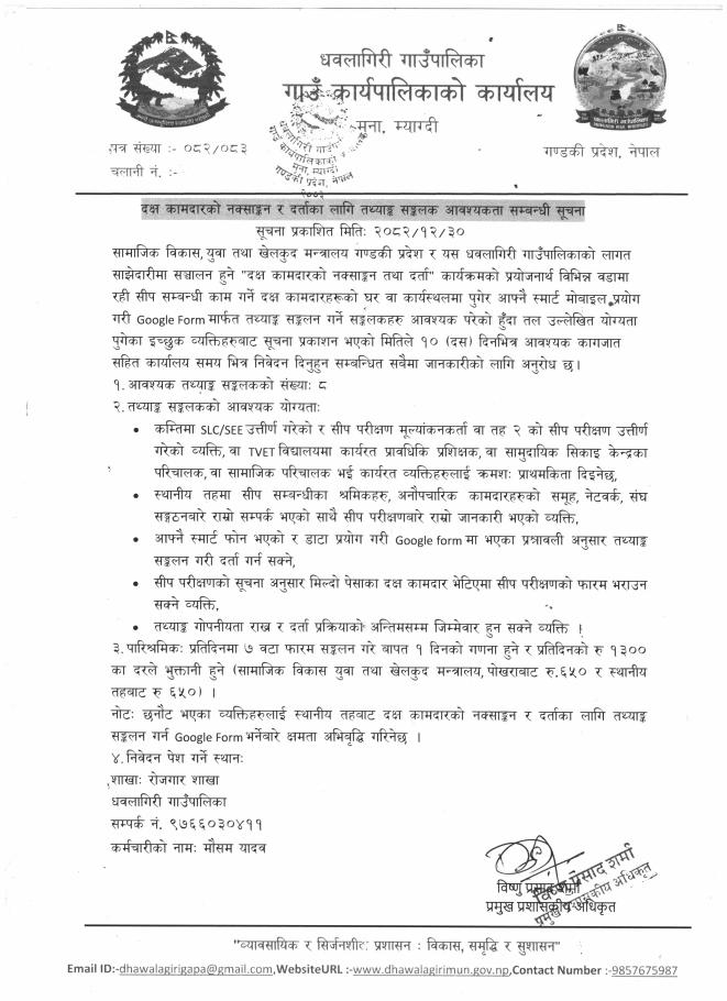 » दक्ष कामदारको नक्साङ्कन र दर्ताका लागि तथ्याङ्क सङ्कलक आवश्यकता सम्बन्धी सूचना !!