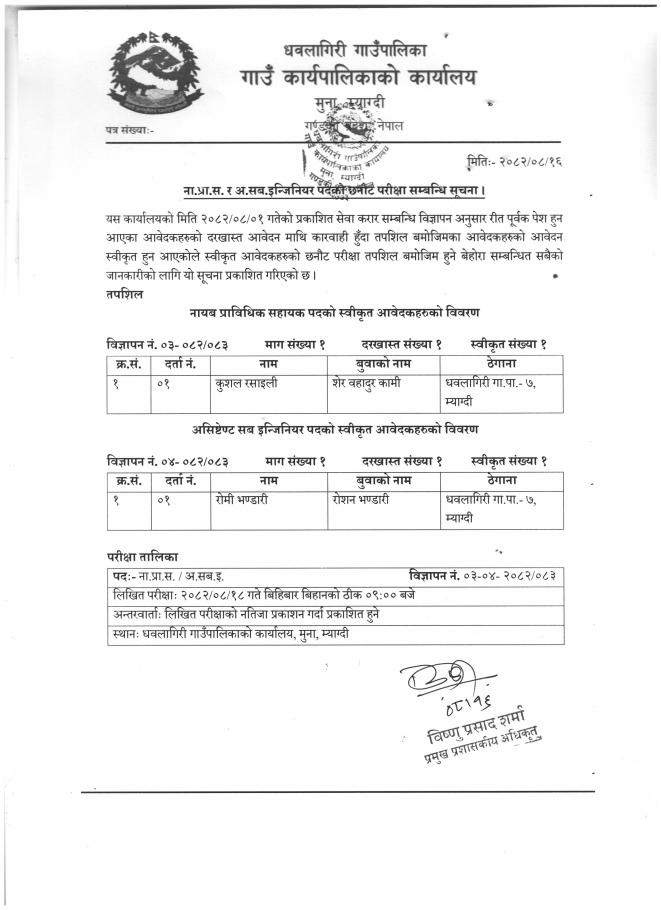 ना.प्रा.स. र अ.सब- इन्जिनियर पदको छनौट परीक्षा सम्बन्धी सूचना !!