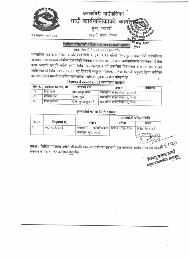 » लिखित परीक्षाको नतिजा प्रकाशन सम्बन्धी सूचना !!