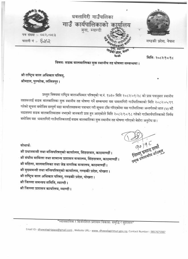 » सडक बालबालिका मुक्त स्थानीय तह घोषणा सम्बन्धमा !!