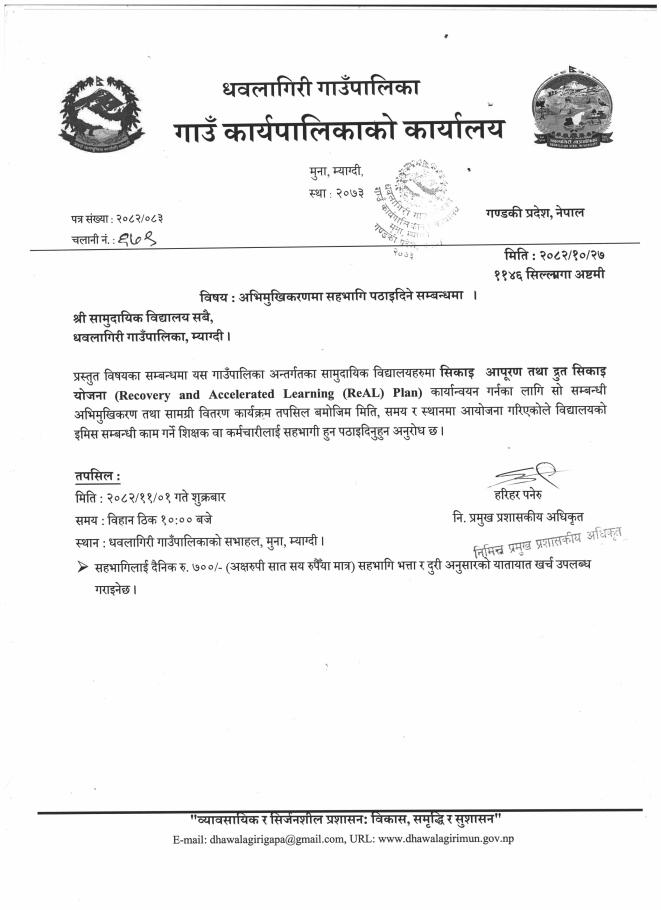 अभिमुखिकरणमा सहभागी पठाईदिने सम्बन्धमा !!