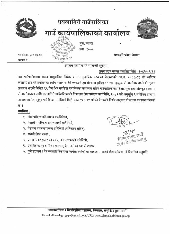 धवलागिरी गाउँपालिकाको आर्थिक ऐन, २०८२
