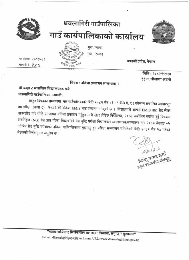 नतिजा प्रकाशन सम्बन्धमा !!