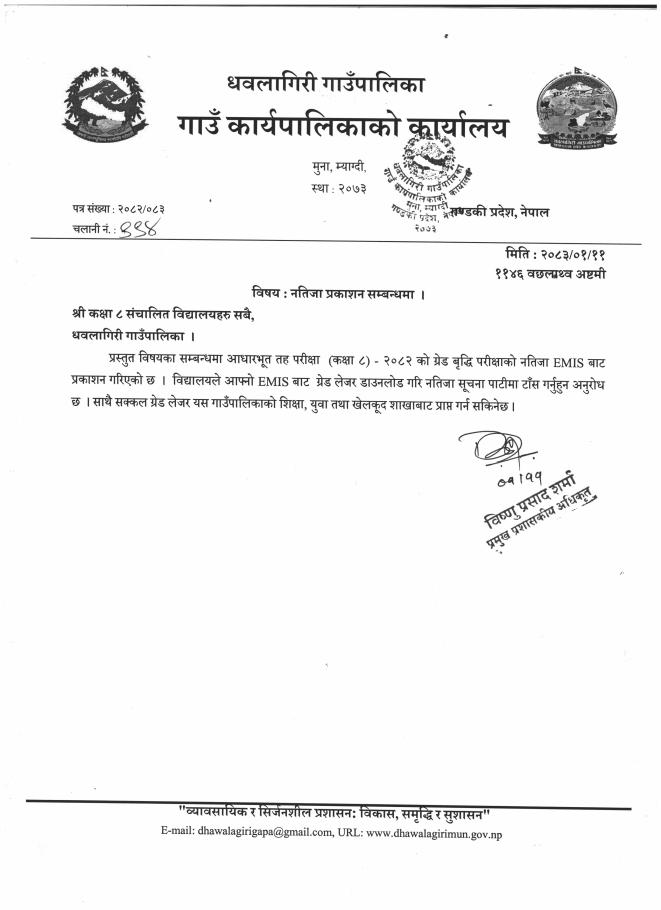 नतिजा प्रकाशन सम्बन्धमा !!