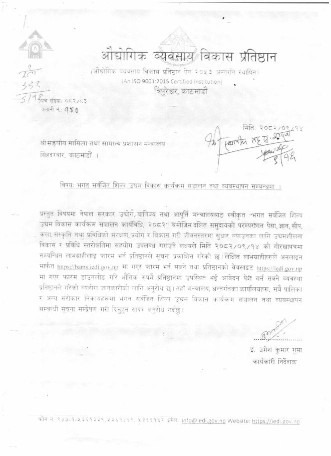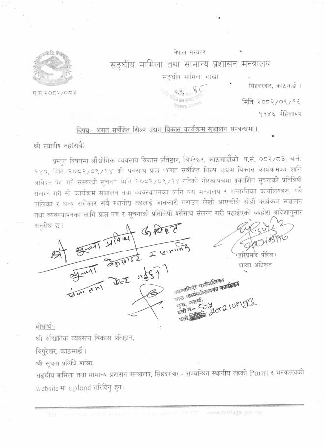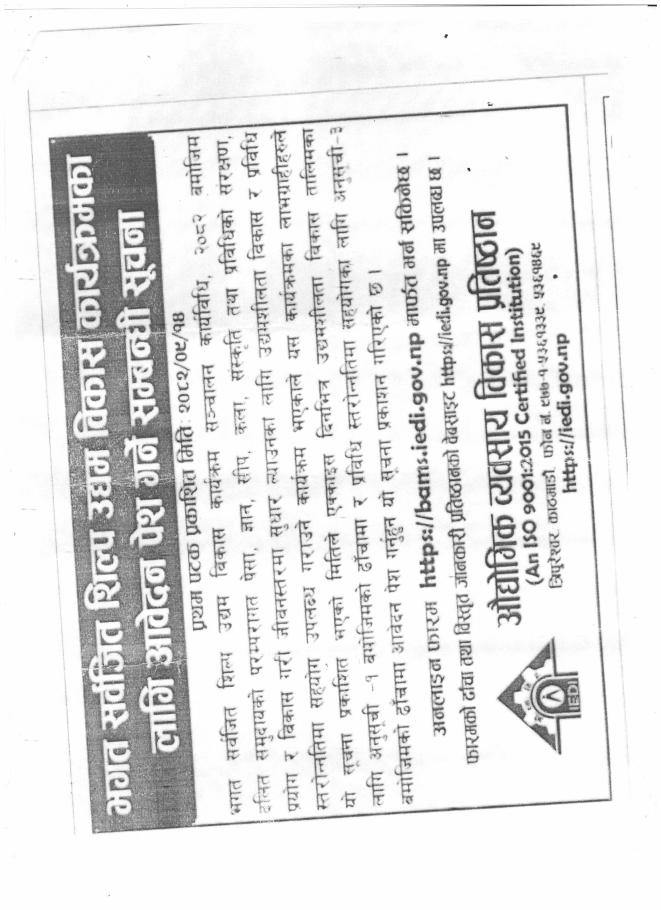 भगत सर्वजित शिल्प उद्यम विकास कार्यक्रमका लागि आवेदन पेश गर्ने सम्बन्धी सूचना !!