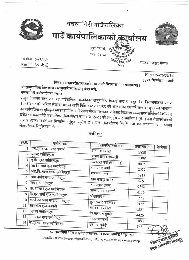 लेखापरीक्षकहरुको नामावली सिफारिस गर्ने सम्बन्धमा !!
