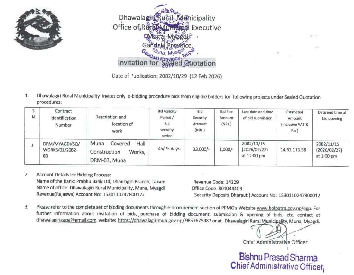 Invitation For Sealed Quotation (Date of publication: 2082/10/29 (12 Feb 2026) !!