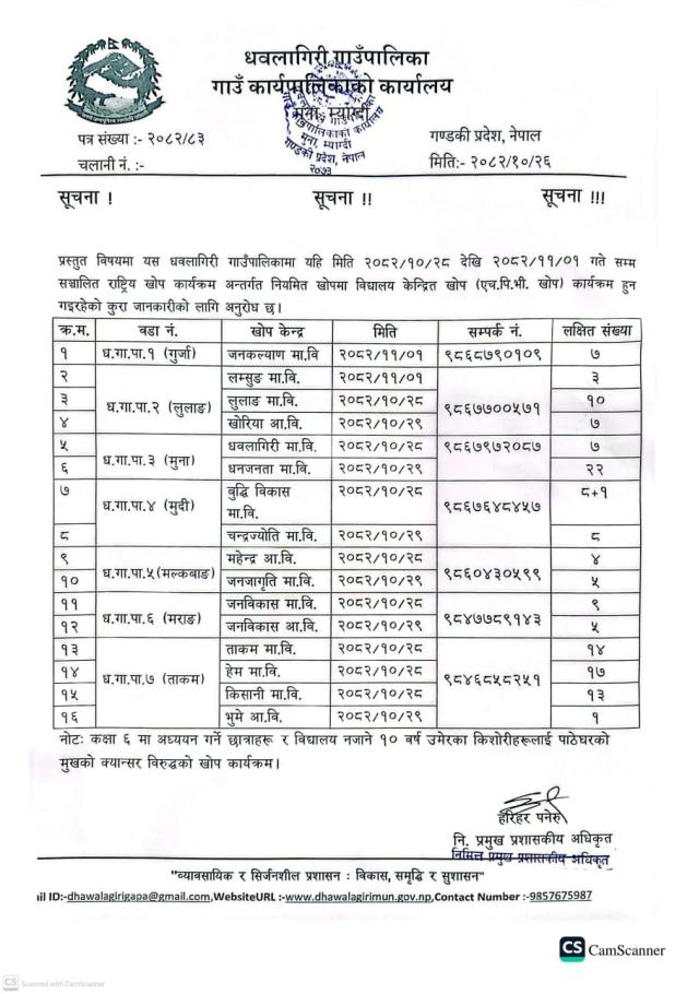 धवलागिरी गाउँपालिकाको संक्षिप्त वातावरणीय अध्ययन तथा प्रारम्भिक वातावरणीय परीक्षण कार्यविधि, २०७८